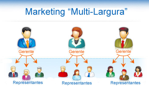 Numa empresa tradicional, um gerente de vendas e alguns representantes de vendas são contratados. A empresa então está limitada tanto ao número de pessoas que elas podem contratar de acordo com os recursos financeiros que a empresa dispõe para pagar salários, quanto a quantidade de pedidos que um gerente pode atender. Uma vez que um gerente esteja bastante atarefado, ela pode contratar um novo gerente, ou quem sabe promover um dos representantes. Se comparado ao MMN, esse talvez seja o modelo de marketing “multi-largura” uma vez que a empresa cresce horizontalmente, ao invés de verticalmente.